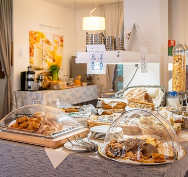 Ogni mattina, una ricca colazione continentale a buffet vi aspetta con un’ampia selezione di dolci, salati e bevande per iniziare al meglio la giornata.