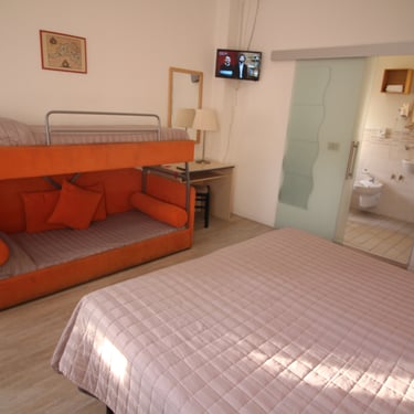 Camera con letto matrimoniale e terzo letto singolo (possibilità di tre letti singoli).