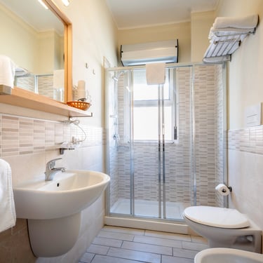 Dotate di balcone, aria condizionata autonoma, TV, cassaforte e bagno privato rinnovato con bidet, box doccia e asciugacapelli.